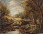 Kvinder ved en flod. Sign. J. Cousen 1885. Olie på lærred. 40×51. Uindrammet.