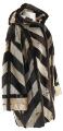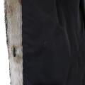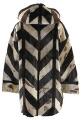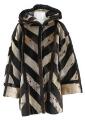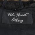 Pelsjakke af flerfarvet sælskin med hætte, knap og hægtelukning og to lommer. Længde ca. 82 cm, brystmål 130 cm, ærmelængde 64 cm. Ca. str. 40.