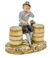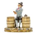Sailor with herring sitting between two barrels. Porcelain figure, decorated in overglaze colours. The Royal Porcelain Factory, modeler Anton Carl Lublau, circa 1788. H. 16.5 cm.