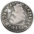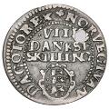 Christian IV, 8 skilling 1609, H 93B, S 24, Sieg 54.4, Knudsen & Nielsen 30, 2,30 g, perforeret - særdeles sjælden stavefejlsvariant (DANKSE) uden halvkors