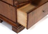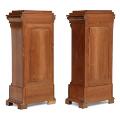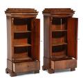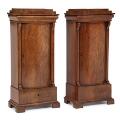 A pair of late Empire mahogany pedestal cabinets, top with hidden drawer, below which curved doors, behind which are shelves, the bases including one drawer. First half-19th century. H. 150 cm. W. 69 cm. D. 45 cm. (2)