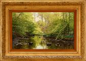 Spring day in the forest with a stream and deer in the clearing. Signed and dated P. Mønsted 1899. Oil on canvas. 48×80 cm.