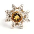 A topaz ring set with a circular-cut topaz weighing app. 2.13 ct., and single-cut diamonds, mounted in 18k white gold. Weight app. 6 g. W. 20 mm. Size 54.5.