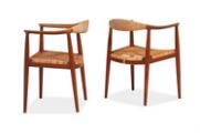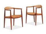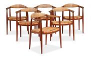 “The Chair”. Sæt på seks armstole af teak. Sæde og ryg udspændt med flet. Model JH 501. Formgivet 1949. Udført 1950–1960'erne hos snedkermester Johannes Hansen, stemplet. (6)