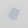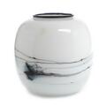 Large bowl of white glass inlaid with blue abstract pattern. Made by Holmegaard. H. 21. Diam 21 cm.