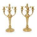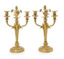 Et par franske kandelabre af forgyldt bronze, hver med tre lysarme. Den ene sign. 'Eug Hazart. Paris' for Eugène Hazart, 1838–1891. 19. årh.s slutning. H. 46. (2)