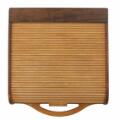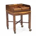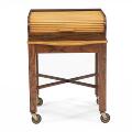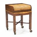 Sewing table of rosewood with tambour top of maple, inside of mahogany and mounted on wheels. H. 54 cm. L. 39 cm. D. 45 cm.