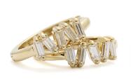 Et par diamantørestikker af 18 kt. guld prydet med talrige baguetteslebne diamanter på i alt ca. 0.36 ct. Vægt ca. 2,5 g. L. 17 mm. (2)