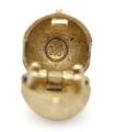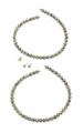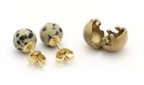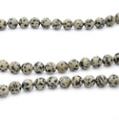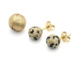 Kuglelås af 14 kt. guld med to halskæder hver prydet med talrige dalmatiner jaspis perler, samt et par ørestikker af 18 kt. guld hver prydet med én perle af dalmatiner jaspis. Lås diam. 10 mm. Perlediam. ca. 10 mm. L. 47 cm. Ørestikker diam. 9 mm. (5)