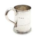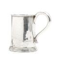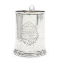 Engelsk krus af sterlingsølv med profileret fodstykke dekoreret med kartouche med gravering, monteret med bund af glas. Mester Edward Ker Reid, London 1865. H. 12,5.