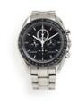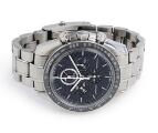 Speedmaster af stål, ref. 31130443201001. Mekanisk kronografværk med manuelt optræk, dato- og månefasevisning, kaliber 1866. 2016. Aventurinskive. Omega lænke af stål. Omkreds cirka 16 cm. Ø 44,25 mm.