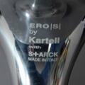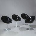Set of four chairs with steel swivel frame. Seat and back of black plastic. Manufactured and marked by Kartell. (4)