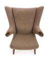 “Bamsestol”. Øreklapstol med negle af palisander og ben af bejdset bøg, betrukket med brunligt uld. Designet 1951. Model AP 19. Udført hos AP-Stolen, København.