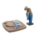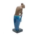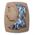 “Martha”. Figur af chamottestentøj. Modelleret i form af kvinde med klædestykke. Delvist dekoreret med turkisblå glasur. Sign. Johannes Hedegaard, 21424. Kgl. P. H. 24 cm. Samt relief af delvist glaseret keramik med kvinde med tørklæde i profil. Aluminia. Nr. 160/2798. H. 32. B. 24 cm,. (2)