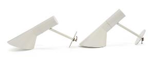 “AJ”. Et par væglamper af hvidlakeret metal, justérbar skærm. Udført hos Louis Poulsen. L. 33. (2)