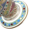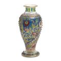 “Jodhpur”. Vase af glas, dekoreret i farver med blomster og ornamentik i islamisk stil, prydet med påsatte stene af kulørt glas. 20. årh.s begyndelse. H. 32.