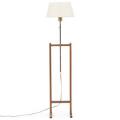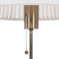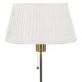 Height adjustable nut wood floor lamp. Shade with white fabric. Manufactured and marked by Svenskt Tenn.