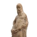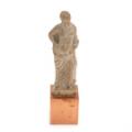 “Sokrates” formstøbt terracotta figur, han står med nøgen overkrop og himation slynget over skulder og ben. Monteret fast på base. 1. årh. f. Kr/e. Kr. H. 12.