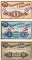 Kreditbanken i Aalborg, 3. udgave, 10 øre u.år, Sieg 117, Pick S 111a, 1 og 5 kr u.år (ugyldig), Sieg 119–120, Pick S113–114, i alt 3 stk.