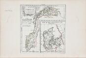 “Norwege” og “Royaume de Danemarck”. Kort over Norge med indsat generalkort over Danmark. 1795. Håndkoloreret kobberstik. Bladstørrelse 29×42 cm. Uindrammet.