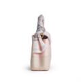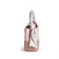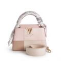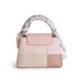 A “Patchwork Capucines Mini” bag of beige and light pink Taurillon leather and light pink Karung snake skin with gold tone hardware, short handle, detachable wide shoulder strap, one compartment with one interior pocket and light pink leather lining. Accompanied by light pink silk twilly with monogram print. H. 14 x W. 20 x D. 8 cm. (2)