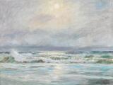 Brænding antagelig ved Skagen. Sign. Friis Nybo. Olie på lærred. 48,5×64 cm