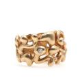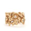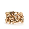 “Troldering” diamantring af 14 kt guld prydet med tre brillantslebne diamanter på samlet 0.06 ct. Vægt ca. 12 g. Str. ca. 55