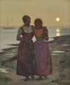“Fortrolig Meddelelse i Skumringen”. A confidential message in the twilight. Signed and dated Chr. Dalsgaard Sorø 1882. Oil on canvas. 58×47 cm.