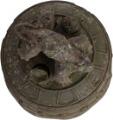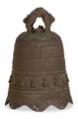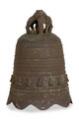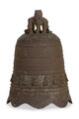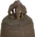 A large iron Buddhist temple bell cast with scripture and design, suspension i shape of fabulous animal. China 17/18th century. H. 65 cm.