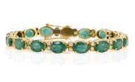 Smaragd- og diamantarmbånd af 18 kt. guld prydet med talrige oval facetslebne smaragder og brillantslebne diamanter. Vægt ca. 25,5 g. Smaragder H. ca. 7,9–8,1 mm. B. ca. 5,9–6,1 mm. D. ca. 4–4,5 mm. B. 5 mm. L. 18 cm.