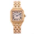 Panthère af 18 kt. guld, ref. 887968. Quartz-værk med datovisning. 1990’erne. Ur og lænke er prydet med talrige brillantslebne diamanter. Cartier lænke af 18 kt. guld. Omkreds cirka 17,5 cm. Ø 28 mm.