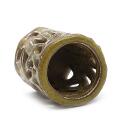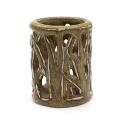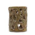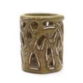 Lille, cylindrisk vase med gennembrudte sider i form af grene. Dekoreret med solfatara glasur. Sign. Salto, 21472. Kgl. P. Udført 1958. H. 7,5. Diam. 5,6.