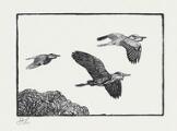 “Hejren”. I. Sign. monogram med blyant. Træsnit. Bladstørrelse 20×28. Uindrammet.