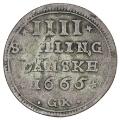 Frederik III, 4 skilling 1665, H 136B, S 93 - extremely rare type where the obverse legend goes clockwise