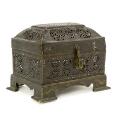 Late 19th century Qajar copper casket. H. 15 cm. D. 15 cm. W. 20 cm.