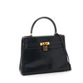 A “Kelly” 22 of dark blue leather with golden hardware, padlock, key, keystring and three interior pockets. 1982.