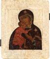 A Russian icon depicting the Mother of God Fedorovskaya. Tempera on wooden panel with “kovcheg”. C. 1700. 31,5×25,5 cm.