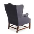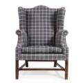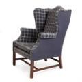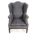 Øreklapstol betrukket med ternet cotil, profileret stel af mahogni. 1940–50'erne.