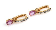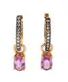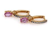 Et par diamantørestikker af 18 kt. guld delvist sort rhodineret guld hver prydet med talrige brillantslebne diamanter og aftageligt safirvedhæng hver prydet med oval facetslebet pink safir på i alt ca. 1.06 ct. Samlet vægt ca. 3 g. L. 13–20 mm. (4)
