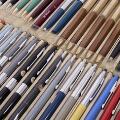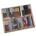 A selection of fountain pens, ballpoint pens, rollerball pens and mechanical pencils of resin, metal etc. on a presentation tray. L. 13–14.5 cm. (47)