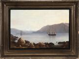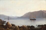 Galatea in a Greenlandic fiord. Indistinct signature. Oil on canvas. 22×33 cm.
