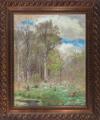 Blooming anemones in a spring forest. Signed with monogram. Oil on canvas. 77×96 cm.