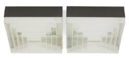 “Kvadratlampen”. A pair of grey lacquered metal and plastic ceiling lamps. Manufactured and marked by Lyfa. H. 20. L./W. 37.4 cm. (2)