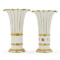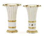 Two so-called Hetsch porcelain vases adorned with gilt ornamentations, one with flowers like Henriette. Royal Copenhagen. H. 27–28 cm. (2)