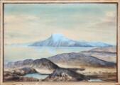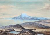 Parti fra Nuuk i Grønland. Sign. L. Jessen 1949. Betegnet på bagsiden Nuuk, Grønland. Vandfarve på papir. Lysmål 29×42.