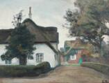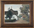 View from a small village. Signed EK. Oil on canvas, mounted on board. 32×40 cm.