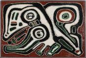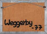 Komposition. Sign. på bagsiden Weggerby - 77. Vægrelief af stentøj i ramme af jern. 40×55,5.