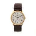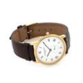A gentleman's wristwatch of gold plated metal, ref. FC200/220. Quartz movement. White dial with black hour markers and blued hands. Brown strap with Frederique Constant C-type buckle of gold plated metal. Watch diameter 37 mm. 2000s.