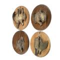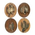 Two pair of oval plaquettes with terracotta bird game, partridge, snipes. Early 20th century. L. 44,5 cm. (4)