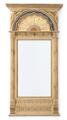 A Swedish late Gustavian mirror in giltwood frame with painted decoration. Sweden, early 19th century. H. 140 cm. W. 72 cm.